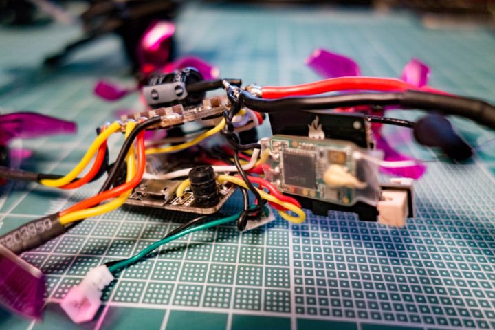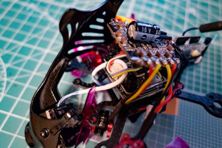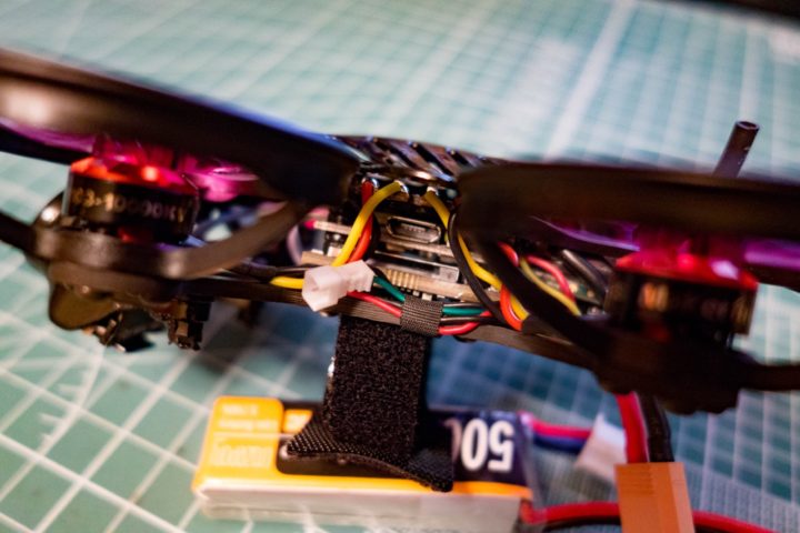 さらに後尾にはLED_STRIPやVTX、レシーバー(Frsky xm)が収められ、配線がかなり入り組んでいます。