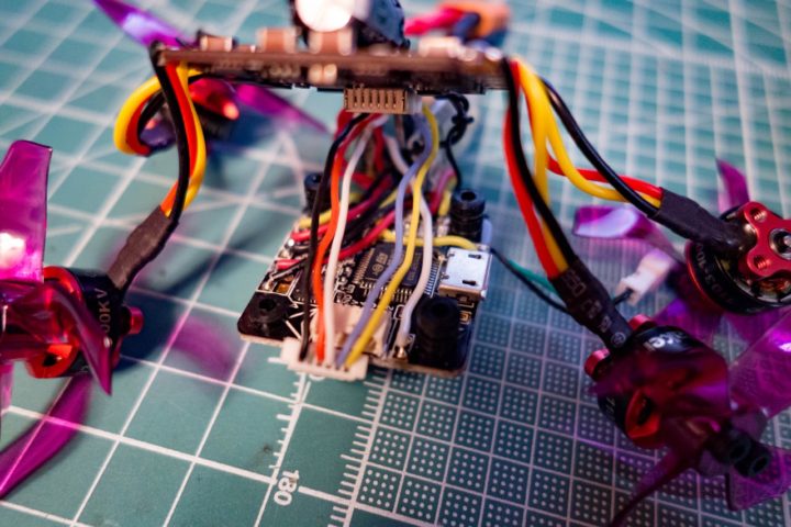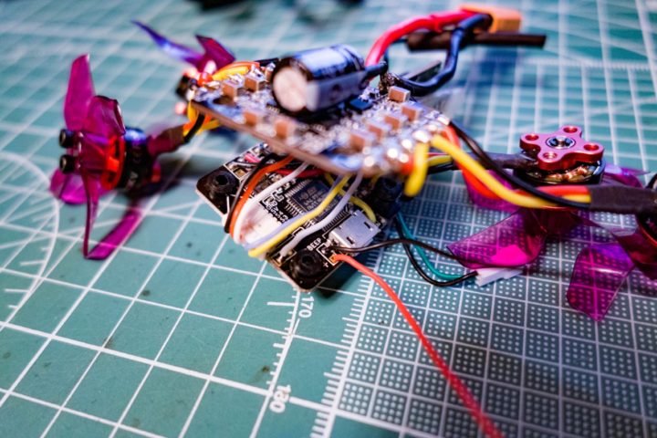 ESCとFCにLED_STRIPやVTX、レシーバーが半田付けされているので配線が複雑になっています。