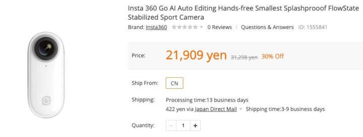 クーポンコード【BGOCT3】入力で$499.99→$429.90で購入可能となっています! - 【追記10.14】日本でも大人気の【Insta360 GO】、Amazonより6,000円ほど安くなるクーポンも頂いたので追記しておきます。