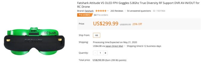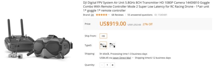 ゴールデンウィーク期間に使えるクーポンは、送信機とゴーグルがメインとなっています。