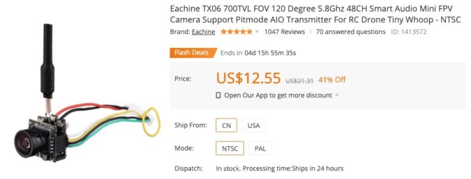 VTXは熱の影響で比較的壊れやすいパーツですが、US65標準のカメラと比べても通常価格でも半額以下と非常にお得(今回クーポン使用で更にお安く!)。
