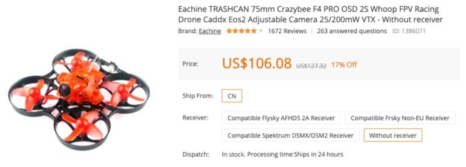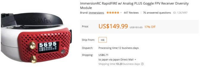 今回は、Mobula7やTRASHCANなど人気機体をはじめ、最新のEachine UZ65やInsta360 GO、そしてこれからWhoopをはじめようとお考えの方にオススメなEachine EV100ゴーグルやImmersionRC RapidFIREなど人気製品が多数含まれています。