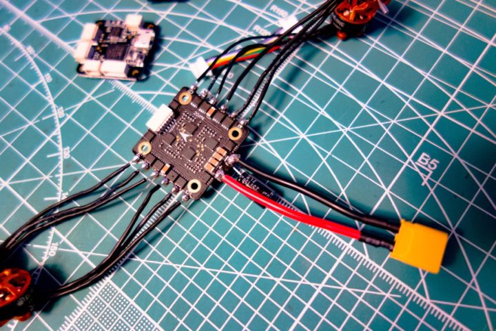 フレームにESCとモーターをマウントさせ配線の取り回しを考慮してケーブルを最適な長さにカットしてからはんだ付けした方が良かったです。