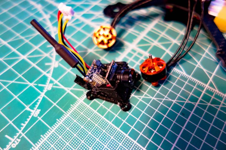 キャノピーにカメラ&VTXを装着。(↓カメラの向きが90°間違っています!)