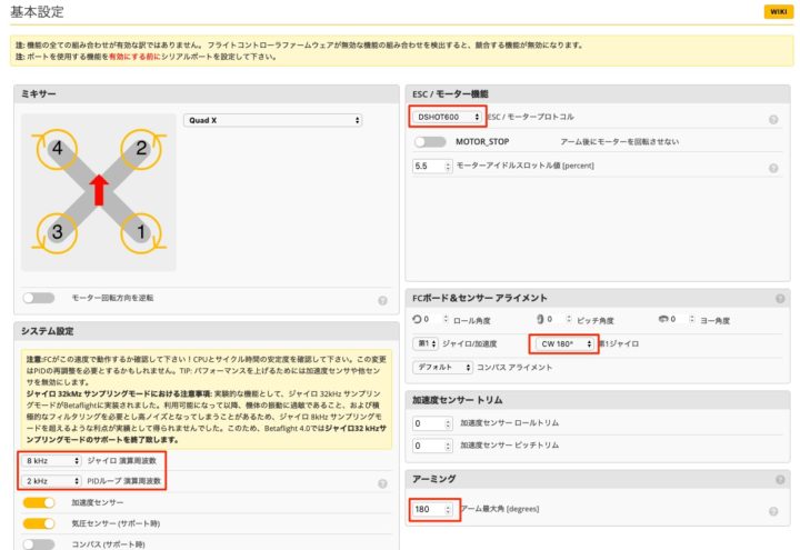 ここまで設定ができればBetaflightでの最低限の設定は完了です!