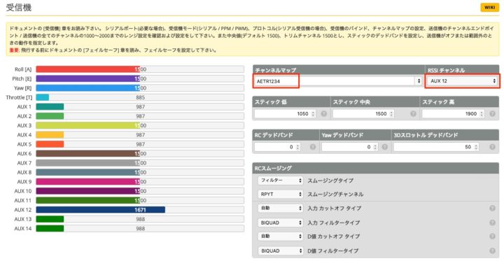 送信機とのバインド作業が完了したら次に[受信機]タブへと移ります。
