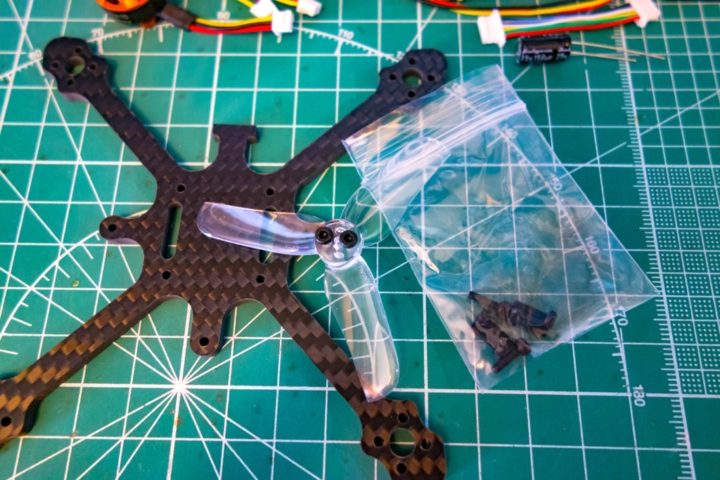 機体を組み上げるためのパーツは全て付属していますが、ご使用の送信機に対応した受信機(今回Frsky xm+を使用しました)に関しては事前に用意する必要があります。