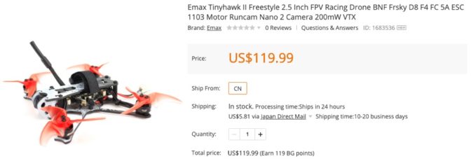 Tinyhawkシリーズの機体は、FCにVTXが直付けされていまが、200mW VTXが使われたFCは現在Whoop形状のTinyhawk Ⅱで使われているもののみなので、これと同じFC&VTXが使われているものだと思います。