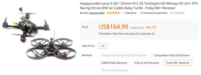 今回ご紹介しているモデルは、Frsky xm+レシーバー搭載モデルとなります。