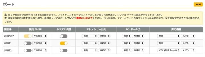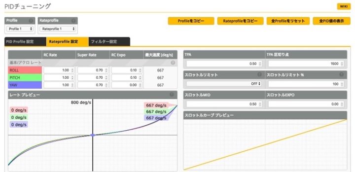 ともにPID Profile1とRate Profile1がデフォルト値です。