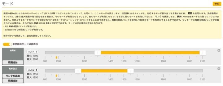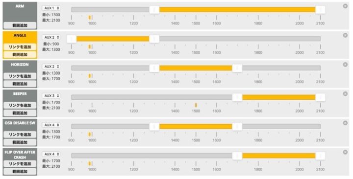 FlightモードやBEEPER、FLIP OVER AFTER CRASH(タートルモード)などを追加しました。