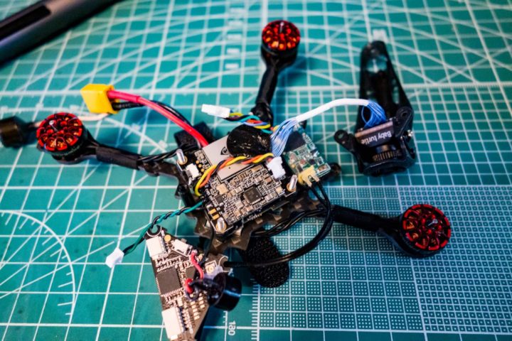 構成的にはFrsky xm+受信機に200mW出力VTX、Caddx Baby Turtleカメラ搭載とスペック的には申し分なく、カメラ以外の構成はLarva Xとほぼ同じとなっています。
