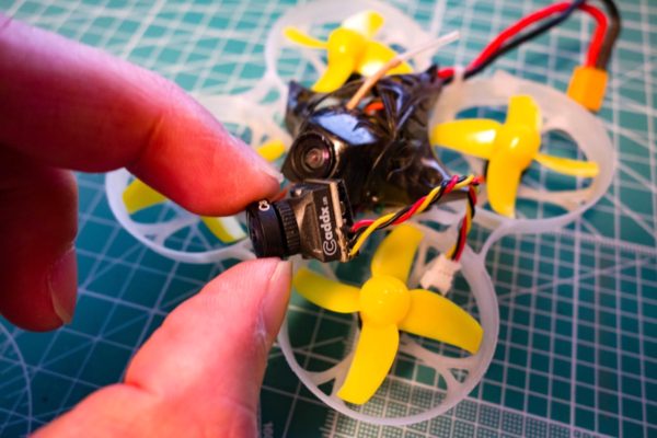 まずはTRASHCANキャノピーにCaddx Turbo EOS2カメラとWhoop_VTXを固定していきます。