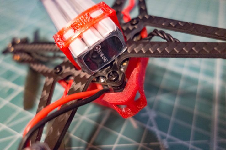 FCの固定は一般的なWhoopとは違い、モーターコネクタがある側が上に向くように固定されています。