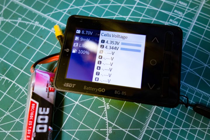 充電完了後、バッテリーチェッカーで各セルの電圧をチェック!