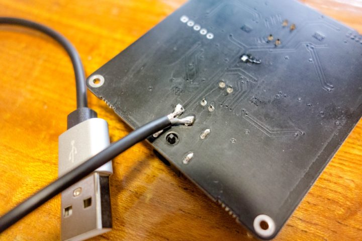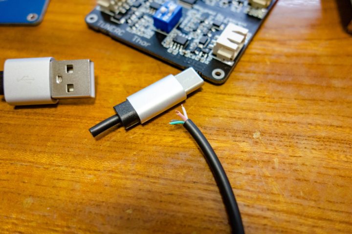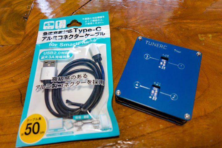 100均等で簡単に手に入るUSB Type C(5V 3A対応)のケーブルをカットして本体電源部にはんだ付けするだけの簡単な改造ですが、格段に利便性が上がりました。