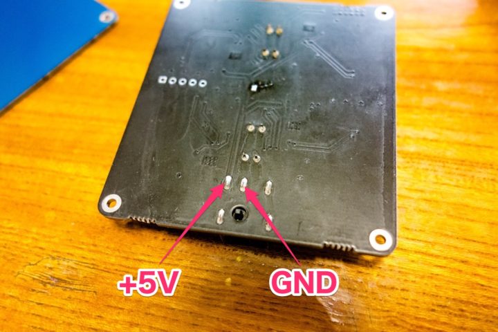 DCジャックはセンタープラスタイプのものなので基盤裏の極性はこのようになります。