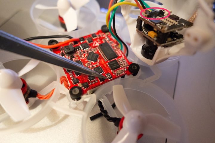 とりあえずは、練習機で使っていた壊れた(カメラ部分とVTX部分が衝撃で分離)BETAFPV『Z01 AIO Camera』を配線し直して飛ばせる状態に!