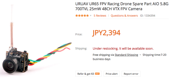 Banggoodのラインナップに、URUAV UR65専用のAIOカメラがスペアパーツとして追加されましたね。