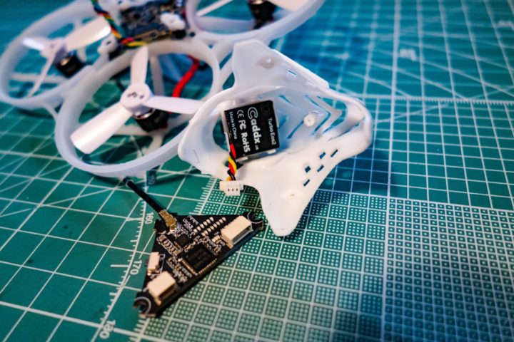使われているVTXは200mW出力が可能な三角形のWhoop_VTXが使われています。