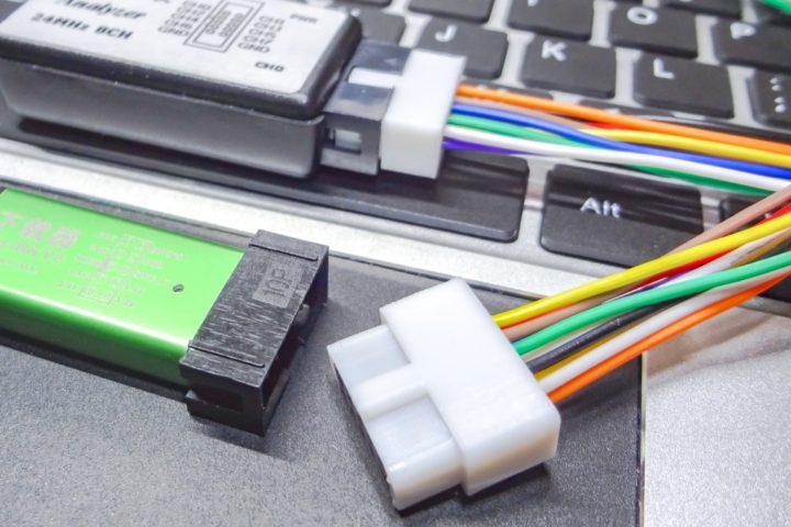 普段よく使う計測機器にUSB接続の小型ロジックアナライザ(8CH 24MHz)がありますが、必要な端子だけの接続ではデュポンコネクタが外れやすく面倒となる場面が結構出てきます。