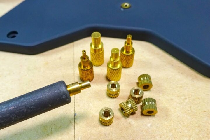 熱圧入式のインサートナットは、はんだゴテの先端にこのような専用のヒートインサートチップを装着して行い、FDMのフィラメントではスルッと簡単に挿入することが出来ます。