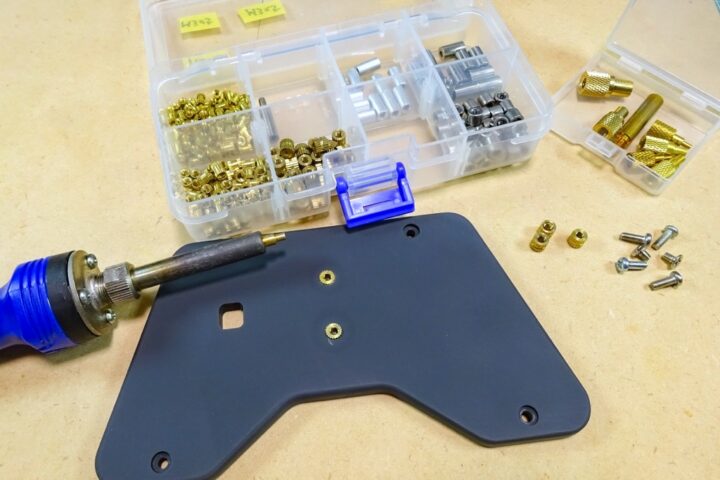 ボトムプレートには電池ボックスを固定するためにインサートナットを挿入するためのホールを開けていたのですが、熱圧入によるインサートナットの挿入がなかなか上手くいかず・・・