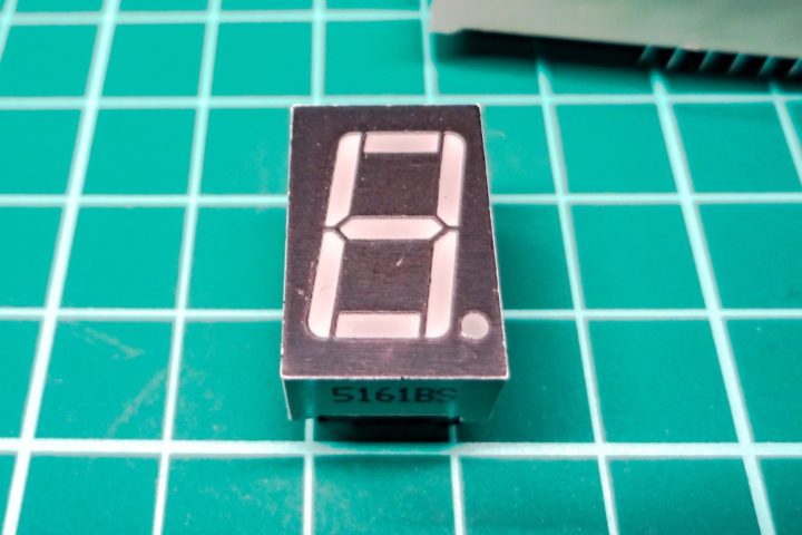 1桁につき7つのLEDが8の字に配置されていて、それらの点灯位置により数字を表示させるというものとなっています。