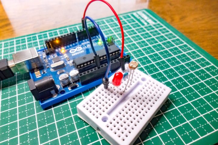それでは今回の目的である明るい時にはLEDを消灯し、暗くなると点灯するという回路&スケッチにしてみたいと思います。