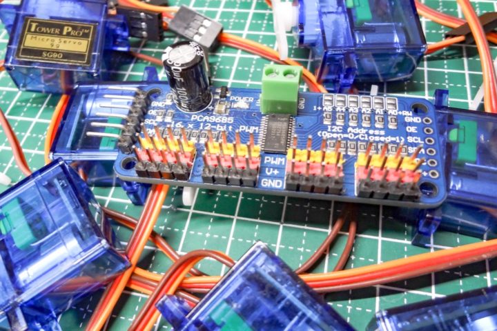 今回、PCA9685サーボモータードライバを使って16台のサーボモーターを動かしてみました。