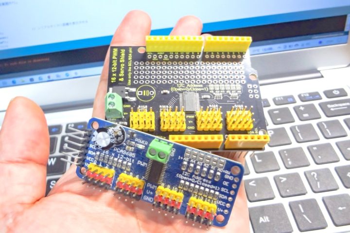 本記事でご紹介したPCA9685ドライバボードのArduinoシールドタイプのものも試してみました。