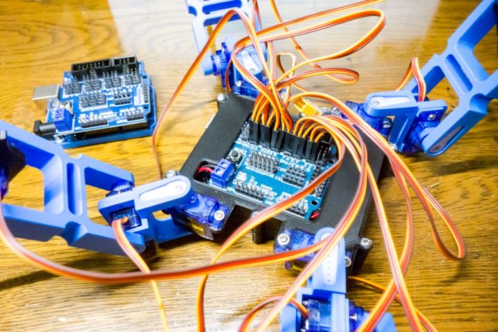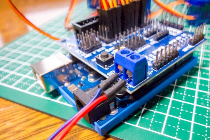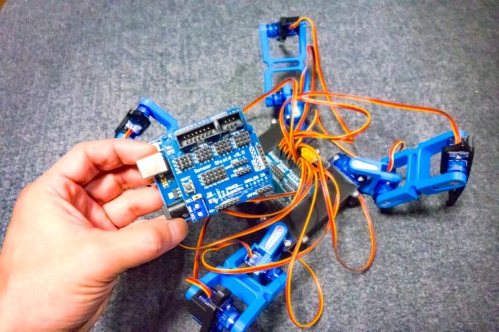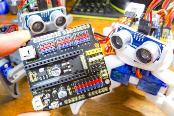 Arduino Nano用のセンサーシールドは4足歩行ロボットでも使ったのですが、このように複数サーボモーターを接続して使う場合にArduinoが落ちるといったコメントをいくつか頂きました。