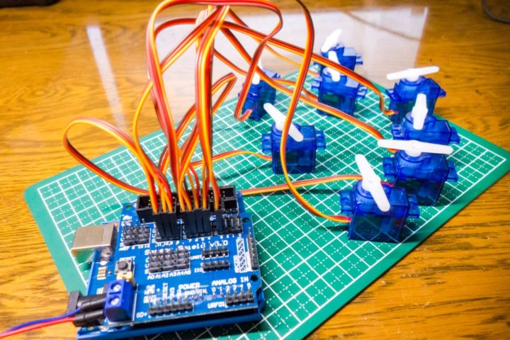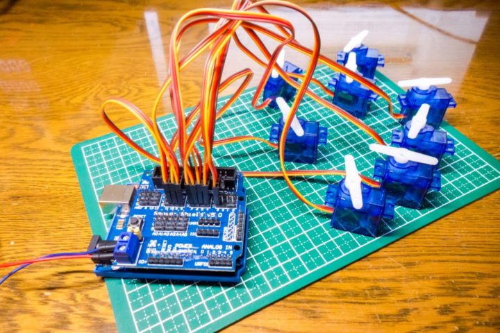 今回は8本のサーボモーターを繋ぎ動作チェックをしてみました。