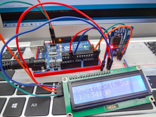 またArduino入門編記事として、RTC(リアルタイムクロック)からの時間の取得やLCDディスプレイに文字を表示させる方法としてI2C通信を使った作例もご紹介しました。