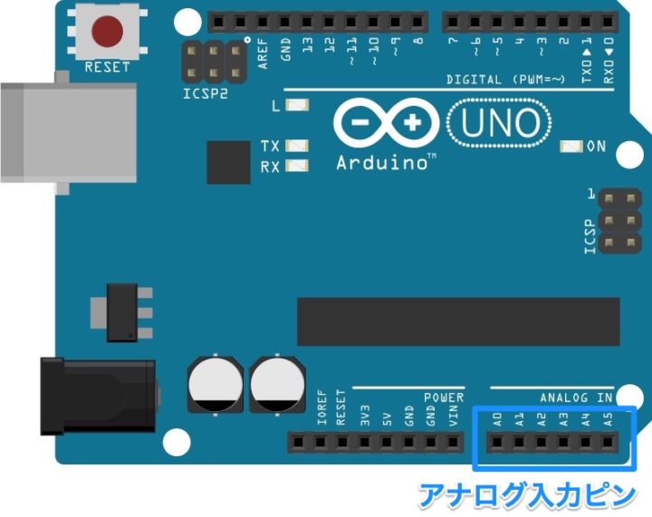 Arduino UnoにはA0~A5までの計6本のアナログ入力ピンがあります。