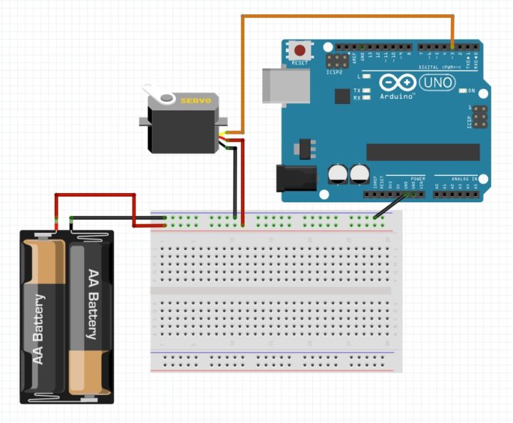 そのためArduinoとは別にサーボを駆動するための外部電源を用意する必要があります。