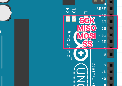 SS(D10)/MOSI(D11)/MISO(D12)/SCK(D13)といった感じですね。