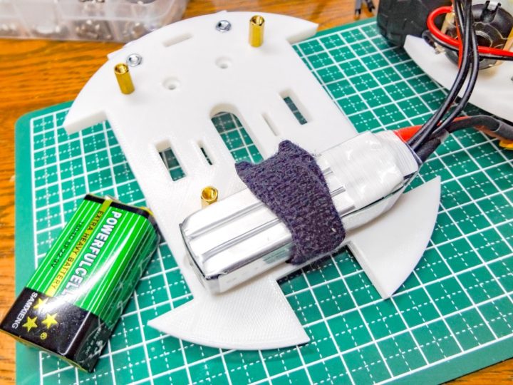 動画で撮るためDC/DCコンバータで電圧を落とし動作スピードを少し遅くしていますが、ルンバみたいに部屋中を動き回ってくれるので結構おもしろいですよ!