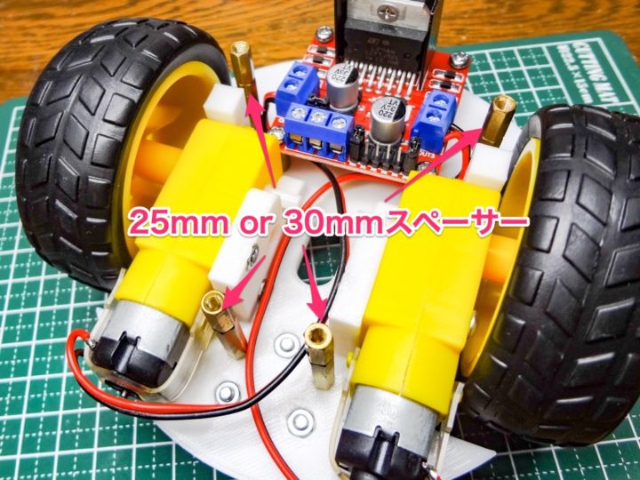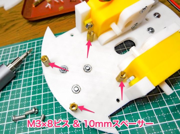 ボディー上パーツを取り付ける部分に25mm(or 30mm)スペーサーをM3×8ビスで固定します。