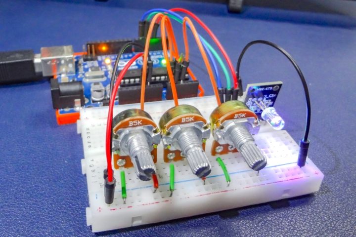 1 2 3 4 5 6 7 | void setup() { } void loop() { int val = analogRead(A0); analogWrite(3, val/4); } |
