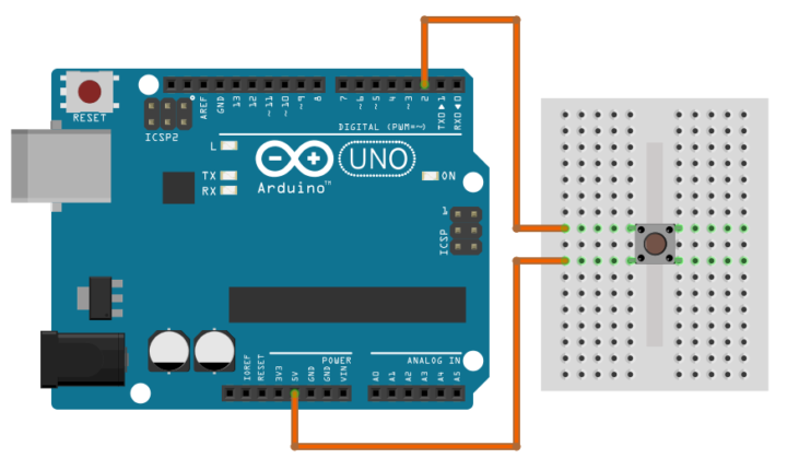 Arduinoのマイコンチップ内でプルアップ抵抗を繋いだ状態に出来るというものです。