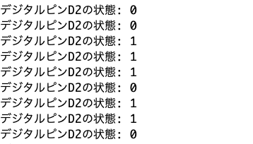 デジタル端子D2に接続したスイッチの状態をシリアルモニタに表示させる簡単なスケッチです。