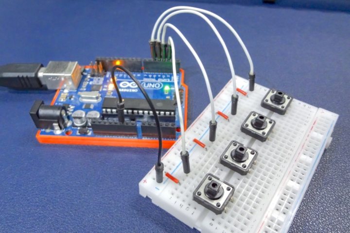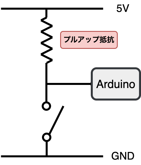Arduinoには内部プルアップ機能があるので、これを活用すれば便利に使うことができますね。
