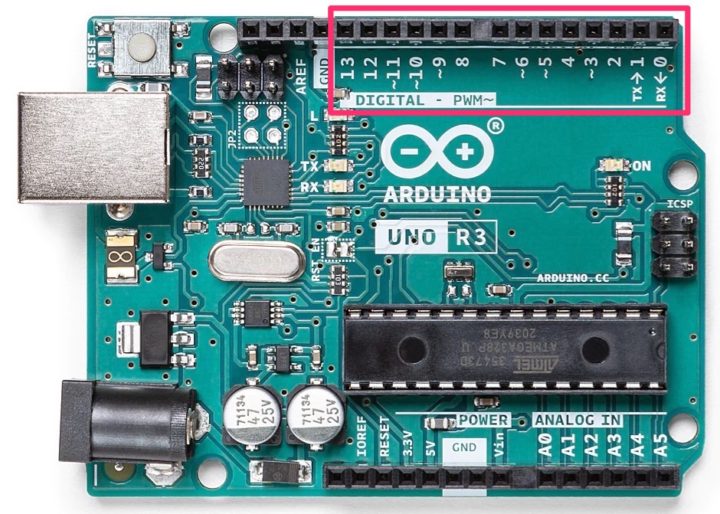 そしてデジタル入出力端子を見ると、例えばArduino Unoではデジタル入出力端子として使えるのはD0~D13までの計14本使うことが出来ます。