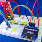 例えばATtiny85では8ピンしかないチップですが8KBのフラッシュメモリが使えるのでArduinoスケッチを書き込みこのようなミニゲーム機を作るなんてこともできます。
