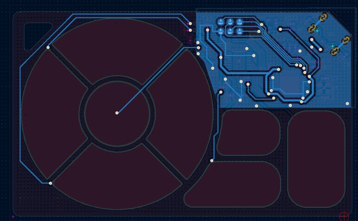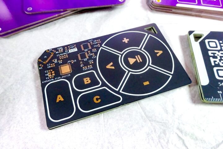 そして今回はこれを応用し、単純なパッド形状からアレンジしてカスタム形状のパッドを名刺サイズの基板に作り込み、タッチ操作でマクロパッドとして使える名刺基板を製作してみました。