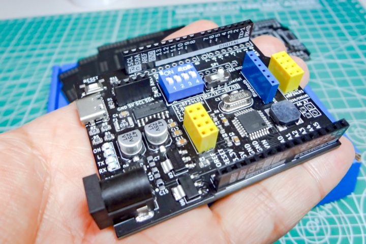 上記記事でご紹介したように、普段Arduinoを使っていてボードにこんな機能が標準で付いていたら便利なのにとか他の互換ArduinoボードのようにType-C端子だったら使い勝手がいいのに・・・なんて思う部分は多々あります。