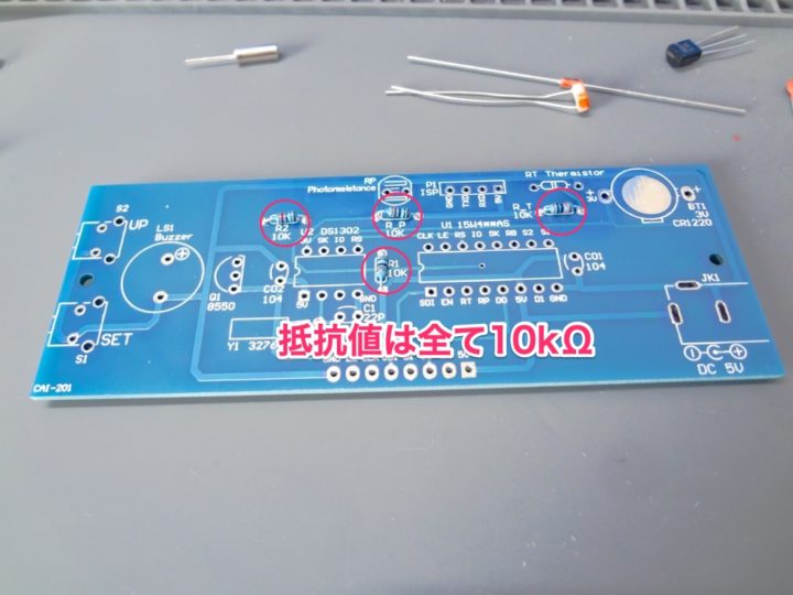 まずは抵抗の取り付けからです。