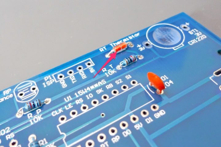 サーミスタ(温度センサー)の取り付けです。