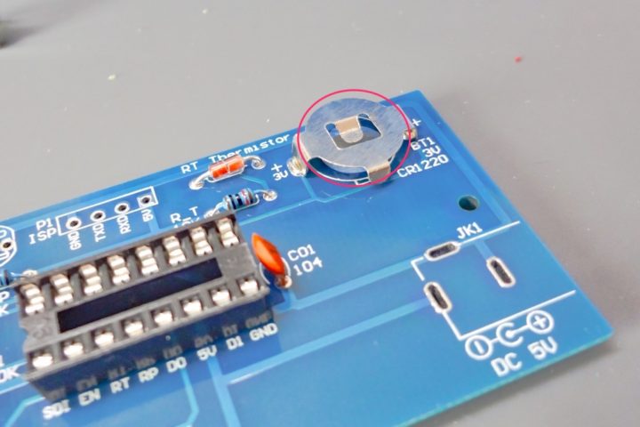 RTC(リアルタイムクロック)用のボタン電池ホルダーの取り付け。